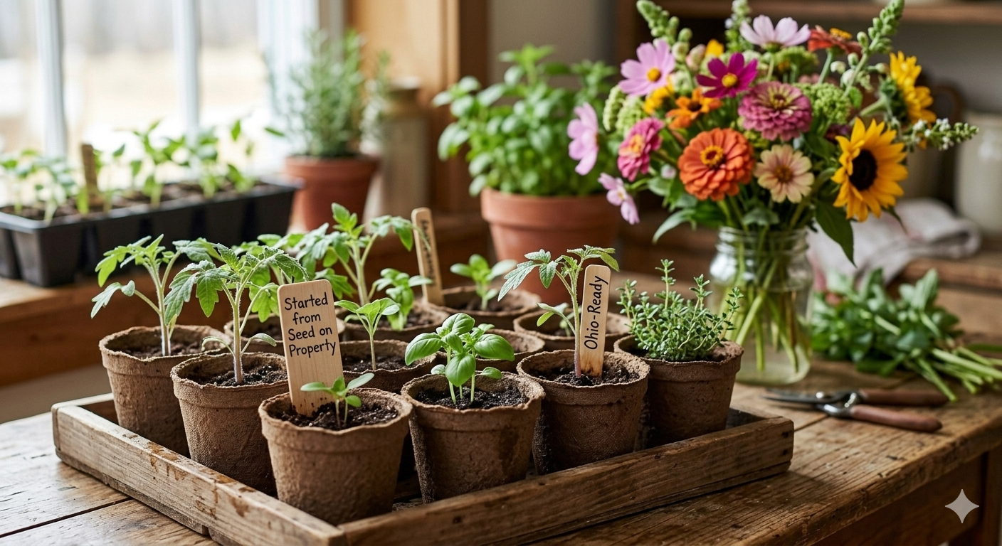 Started from seed right here on the property. Tomatoes, peppers, herbs, flowers, and more — grown on Ohio's schedule and ready for your garden. We offer a wide variety each spring and take custom pre-orders for bulk quantities.